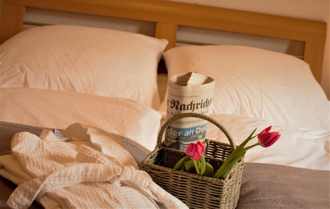 Optional zubuchbar: Wäschepakete 22€/Person oder nur Bettwäsche/Handtücher je 12€/Person. Waschmaschine und Trockner stehen gegen Gebühr im Haus zur Verfügung (1€ Münzen). Die Wohnung verfügt über 2 Balkone. Garten zur gemeinschaftl. Nutzung.